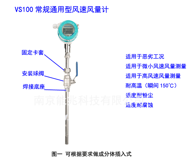 VS100系列常規通用型風速風量計,一體插入式與分體插入式可選,安裝方便簡潔,用于測量和控制氣體風速與風量;耐溫150度,精度高,直接測量質量風量,并得出標準風速與標況體積風量,無須溫壓補償;