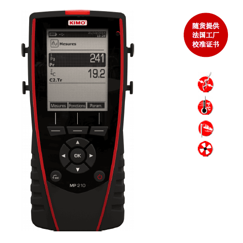 MP210多功能手持差壓風量風速儀 發布時間:2016-6-10 9:04:02 MP210多功能手持式差壓風量風速計為法國KIMO公司原裝,功能強,搭配相應測量模塊或探頭,可精確測量差壓,風速,風量,溫度,轉速,CO,可燃氣體泄漏; L型皮托管 (型號:TPL-XX-YYYY) XX-皮托管直徑 YYYY-皮托管長度 L型皮托管 內含熱電偶溫度補償 (型號:TPL-XX-YYYY-T) XX-皮托管直徑 YYYY-皮托管長度 S型皮托管 內含熱電偶溫度補償 (型號:TPS-XX-YYYY-T) XX-皮托管直徑 YYYY-皮托管長度 平均式風速測片 (型號:DEBIMO-YYYY) YYYY-測片長度 可訂做所需長度 上一頁:DBM610套帽式風量罩風量儀 下一頁:AMI310多功能手持風量風速..