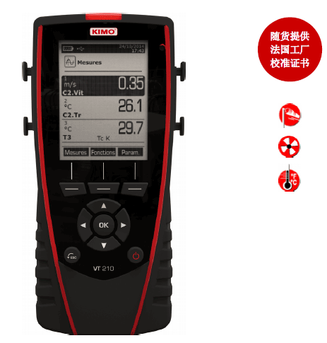 VT210多功能手持溫濕度風速風量儀 發布時間:2016-6-10 14:32:19 VT210多功能手持溫濕度風速風量儀 為法國KIMO公司原裝,功能強,搭配相應測量模塊或探頭,可測量溫濕度,風速,風量,溫度,轉速,大氣壓力等; 上一頁:AMI310多功能手持風量風速.. 下一頁:LV111小葉輪便攜式風量風速..