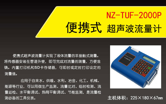 NZ-TUF-2000P便攜式超聲波流量計帶微型打印機(jī),是用來測量封閉管路液體流量的,它的傳感器是采用非接觸、附著式的,這樣就使安裝簡單易于操作。