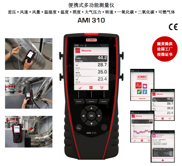 AMI310多功能手持風(fēng)量風(fēng)速儀為法國KIMO公司原裝,功能強(qiáng),搭配相應(yīng)測量模塊或探頭,可測量:差壓,風(fēng)速,風(fēng)量,溫度,濕度,大氣壓力,二氧化碳,CO,轉(zhuǎn)速,氣體泄漏,空氣質(zhì)量與室內(nèi)舒適度等參數(shù);